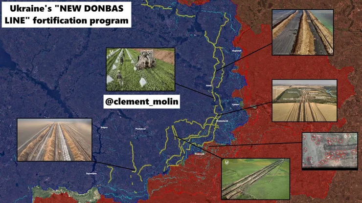 OSINT-исследователь Клеман Молен проанализировал спутниковые снимки, фото и видео со строительства новой украинской линии укреплений. Общий вывод позитивен: на открытых участках фронта, где россияне планировали быстрое продвижение, эта линия способна или остановить противника, или существенно его притормозить.