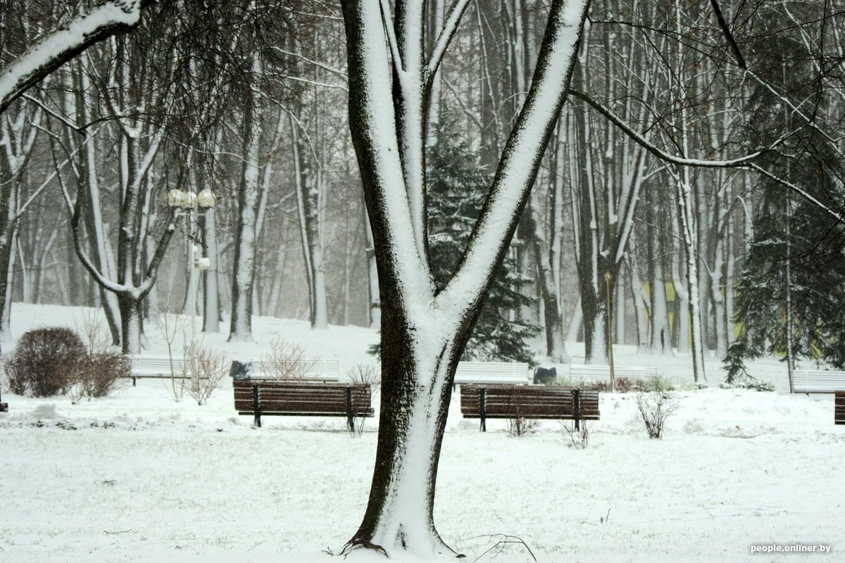 Ночью в Минске выпал снег, и город на время сменил привычный серый фон на зимний. Утром коммунальные службы вышли на улицы, а «Онлайнер» собрал небольшой фоторепортаж из заснеженных районов столицы.