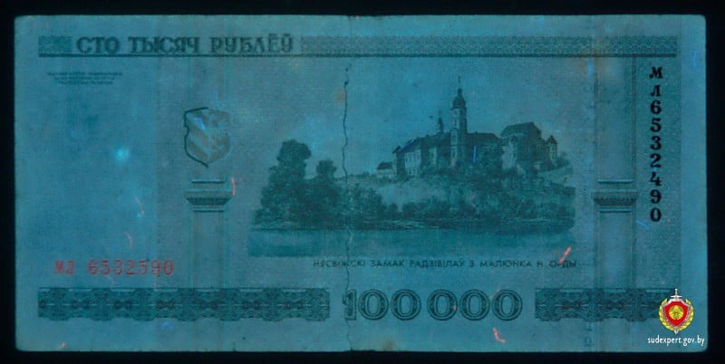 Объектом исследования стали фрагменты денежного билета Национального банка Республики Беларусь номиналом 100 000 белорусских рублей, образца 2000 года выпуска. Поводом для сомнения в подлинности и целостности банкноты послужил любопытный факт: на каждом из фрагментов был указан разный серийный номер.