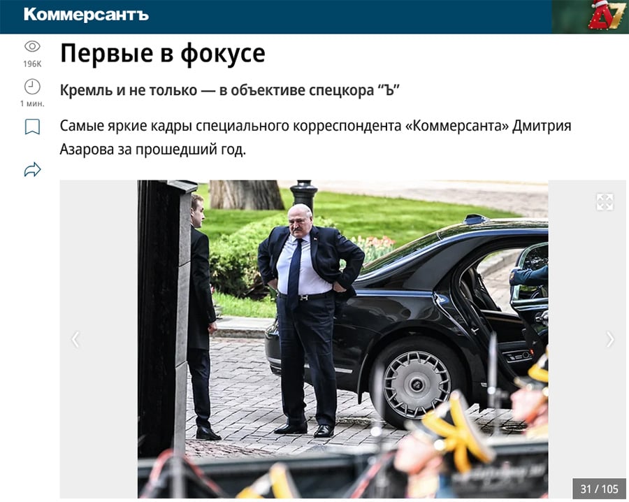 А в конце года издание слегка лягнуло правителя Беларуси. В подборку из 105 фото под названием «Первые в фокусе» включено одно-единственное фото Лукашенко. И да, как вы уже могли догадаться, из той самой скандальной серии со злосчастным ремнем и Николаем.