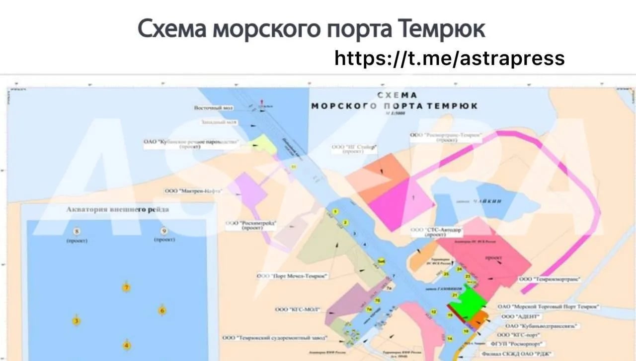 «Порт Темрюк является основным портом, который принимал пиратский флот и переоформлял грузы похищенного угля и зерна из портов Мариуполь и Бердняск», – отметил Андрющенко, добавив, что прилет по порту является проявлением «прямых санкций в действии».