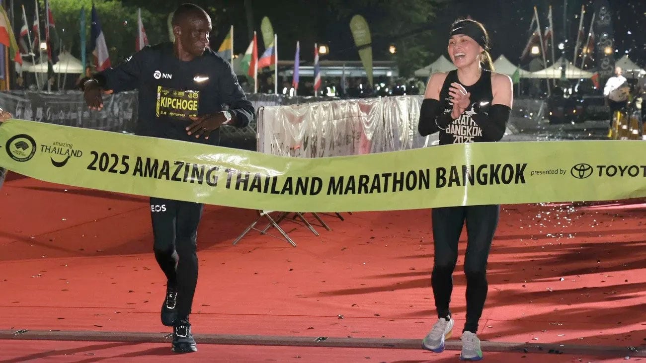 Королева Сутхида официально дала старт полумарафону на дистанции 21.1 км, после чего сама вышла на дистанцию вместе с Кипчоге.