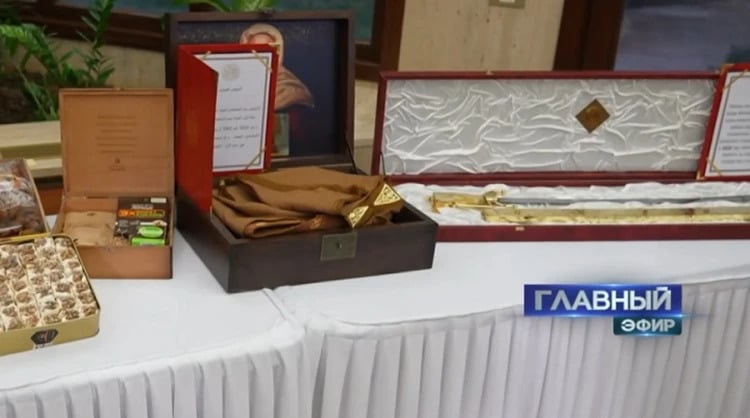 В свою очередь глава Алжира подарил диктатору Беларуси холодный клинок и плащ из верблюжьей шерсти.