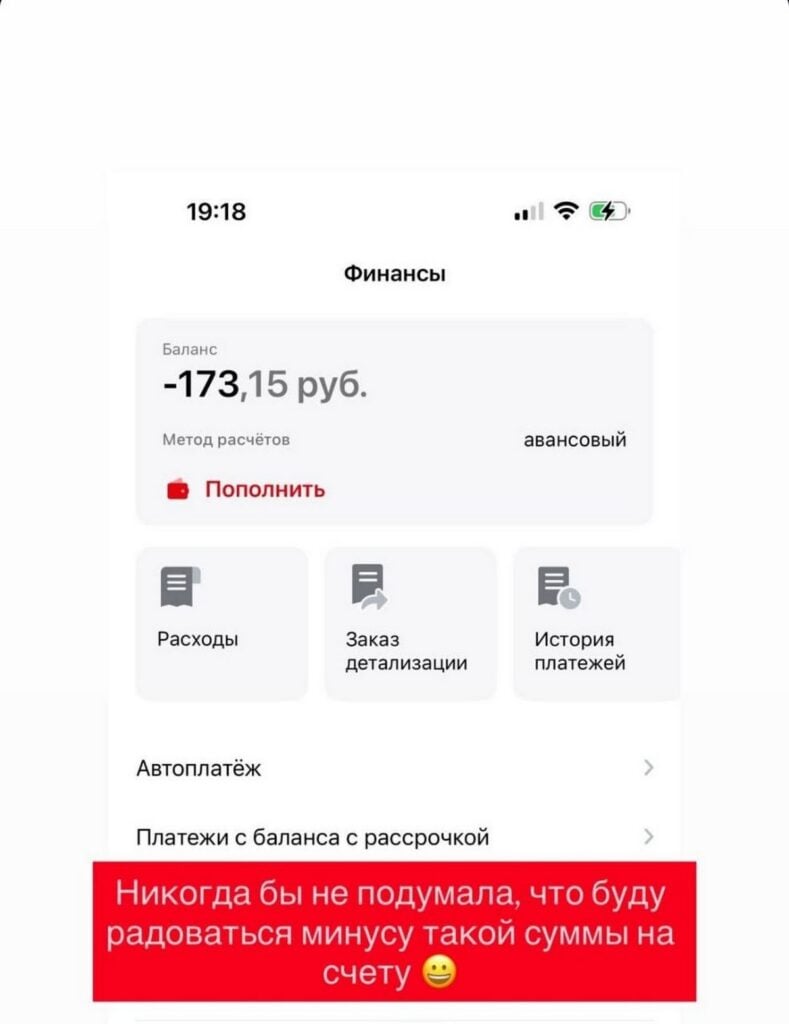 В соцсетях девушка отметила, что «никогда бы не подумала, что будет радоваться минусу такой суммы на счете».