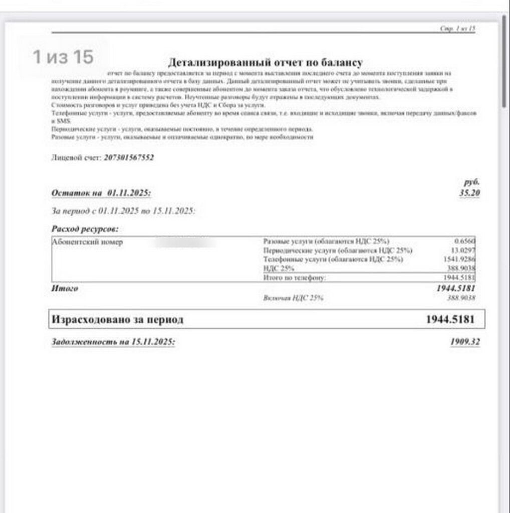 Спустя некоторое время ее номер был заблокирован за перерасход средств, а в личном кабинете она увидела задолженность — 1927 рублей. Причина — стоимость мобильного интернета в роуминге: 40 рублей 99 копеек за 1 МБ.