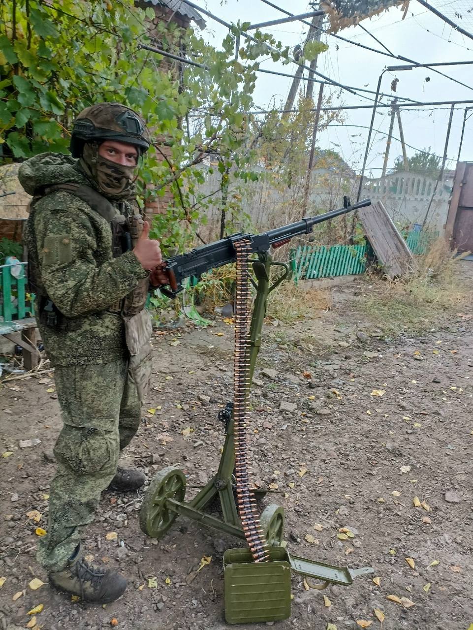 На снимке можно заметить СГ-43 на станке конструкции Василия Дегтярева, который переведен в положение для зенитной стрельбы. Можно предположить, что оружие используют для борьбы с низколетящими дронами.