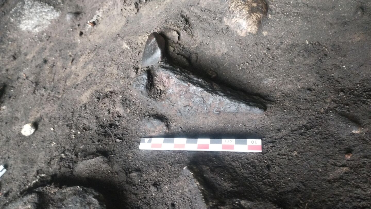 "В ходе разборки очень интересного объекта, который представляет собой выкладку из обожженных камней, где встречаются угли и кости животных, были найдены два металлических артефакта – наконечник стрелы IV–III века до нашей эры и железный топор", – рассказал научный сотрудник Института истории НАН Александр Вашанов.