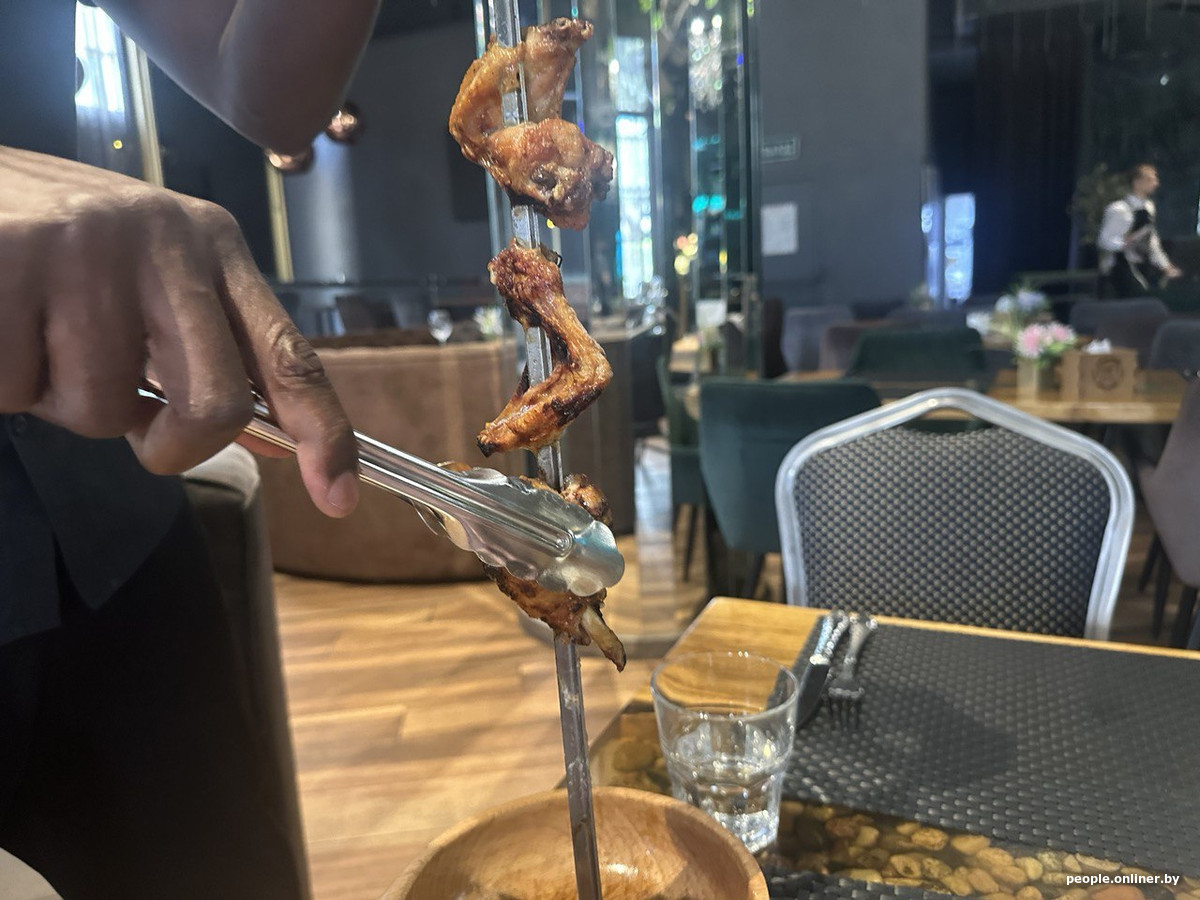 Два года назад в здании легендарной «Журавинки» открылся стейк-хаус «Рио». Концепция ресторана удивила многих: по будням за 35 рублей здесь можно было съесть абсолютно безлимитное количество свежего, только что приготовленного мяса, которое официанты снимают с шампура прямо в вашу тарелку. Такой формат, известный как родизио, уже давно популярен в Бразилии и других странах. Управляющий «Рио» увидел его в Дубае и решил внедрить в минский общепит.