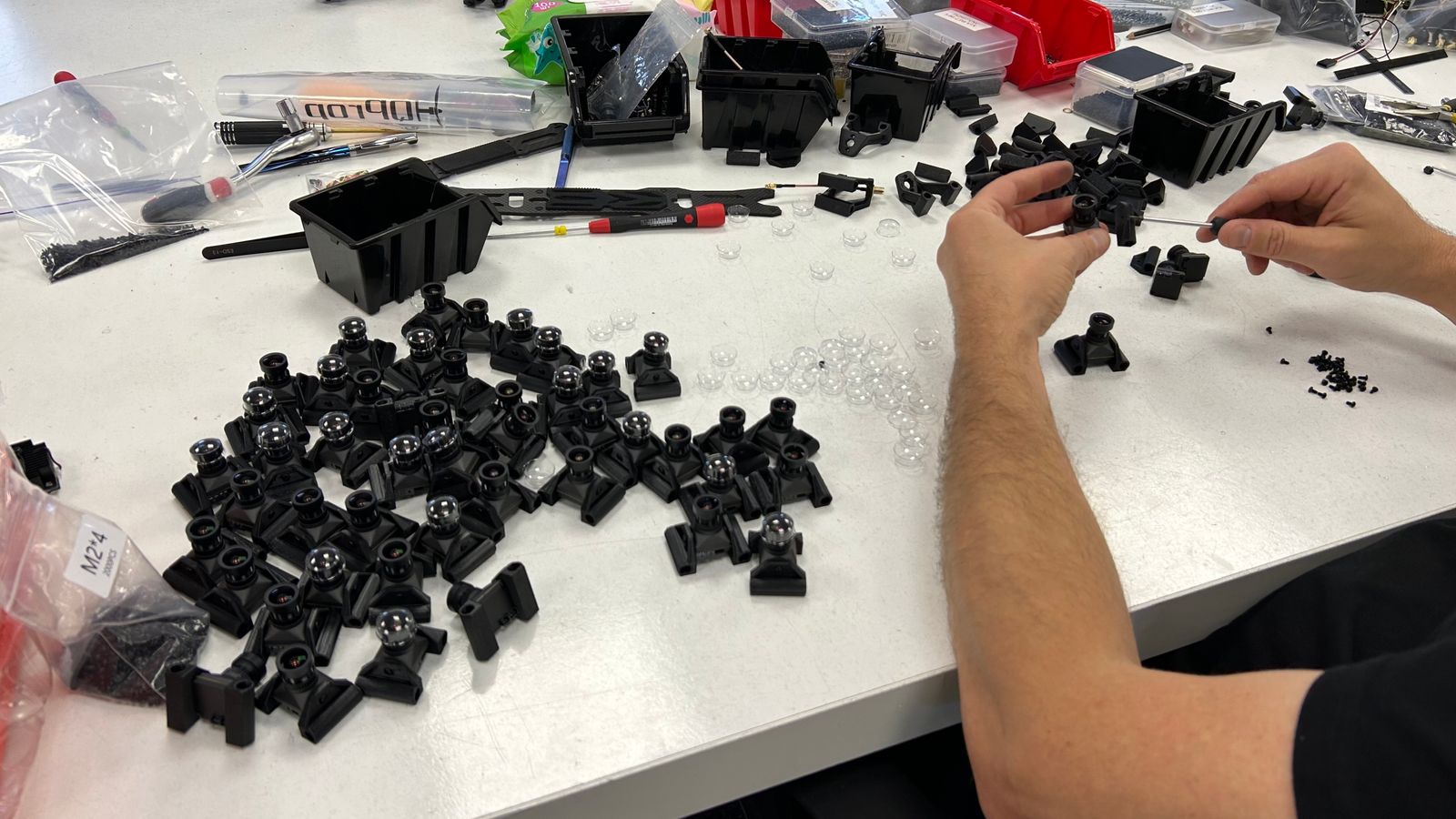 Заводы по производству беспилотников держат в секрете и даже перемещают, чтобы избежать российских ударов. В помещениях, которые внешне выглядят как обычные офисы, беспилотники собирают вручную - от квадрокоптеров со взрывчаткой до аппаратов, которые могут атаковать российские разведывательные дроны. Перед отправкой на фронт каждый аппарат тестируют.