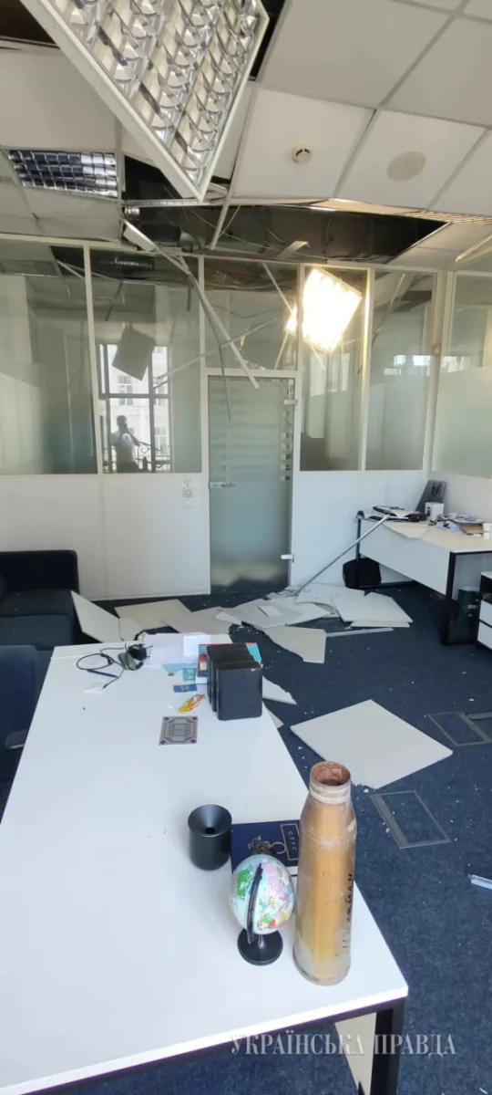В результате ночной атаки России на Киев пострадали не только офис «Украинской правды», но и здания международных организаций, жилые дома и заведения общественного питания.