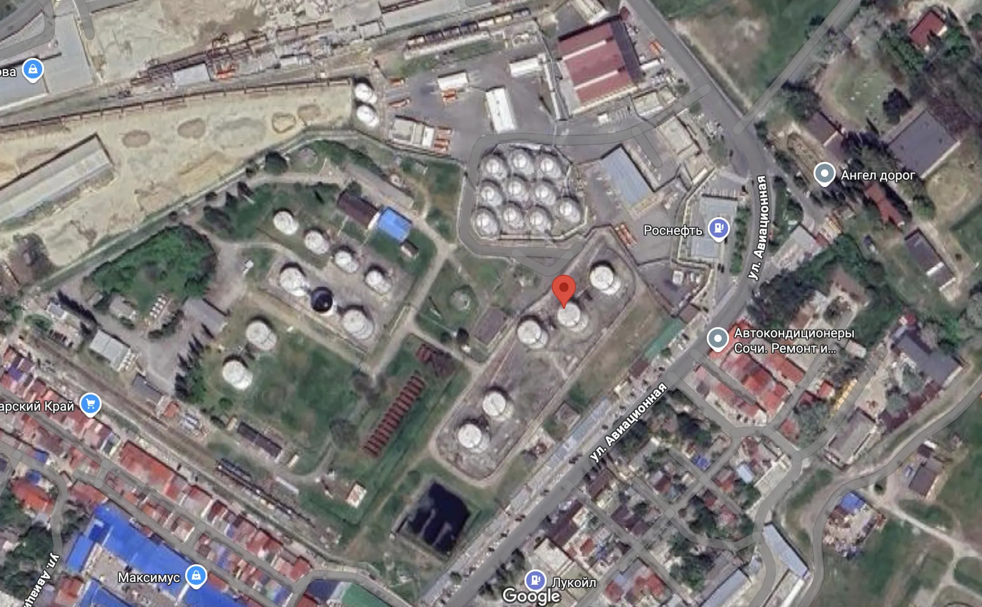 В Росавиации заявили, что в аэропорту «Сочи» введены временные ограничения на прием и выпуск воздушных судов. Нефтебаза «Роснефти» как раз расположена примерно в километре от аэропорта, районе Авиационной улицы.