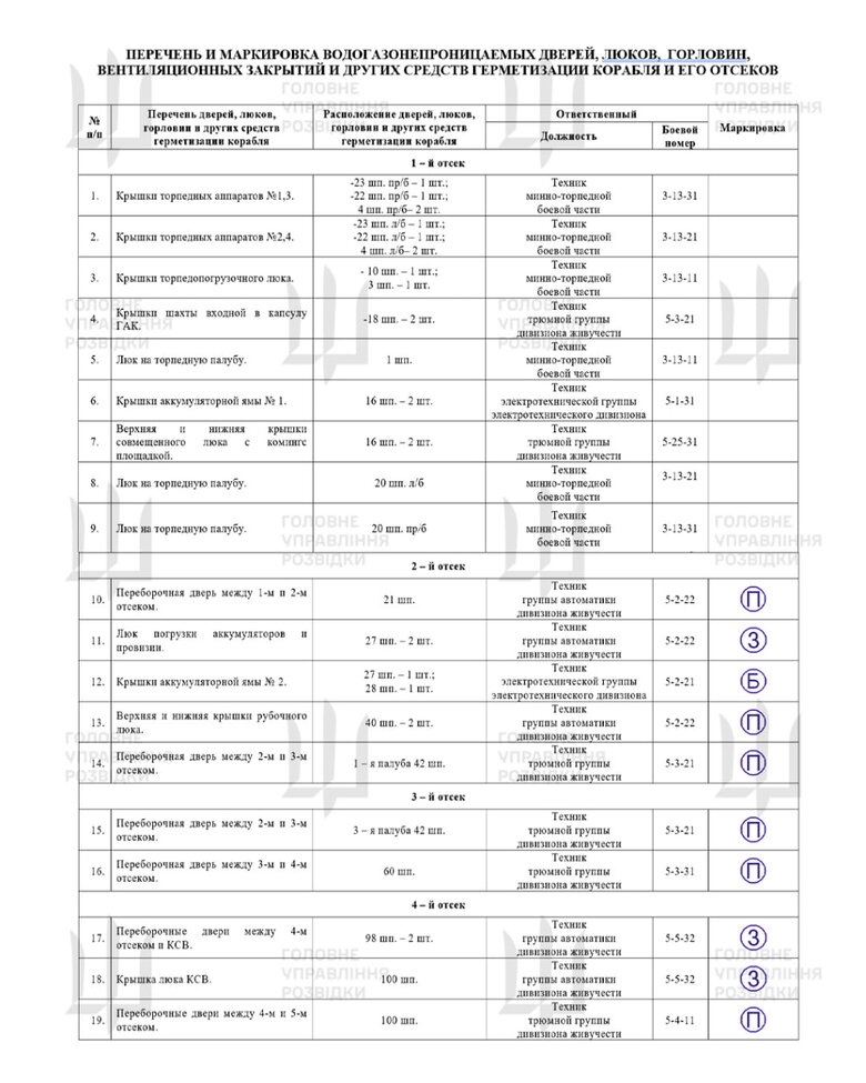 - поименные списки личного состава экипажа подводной лодки, включая данные о должностях, квалификации и уровне физической подготовки;