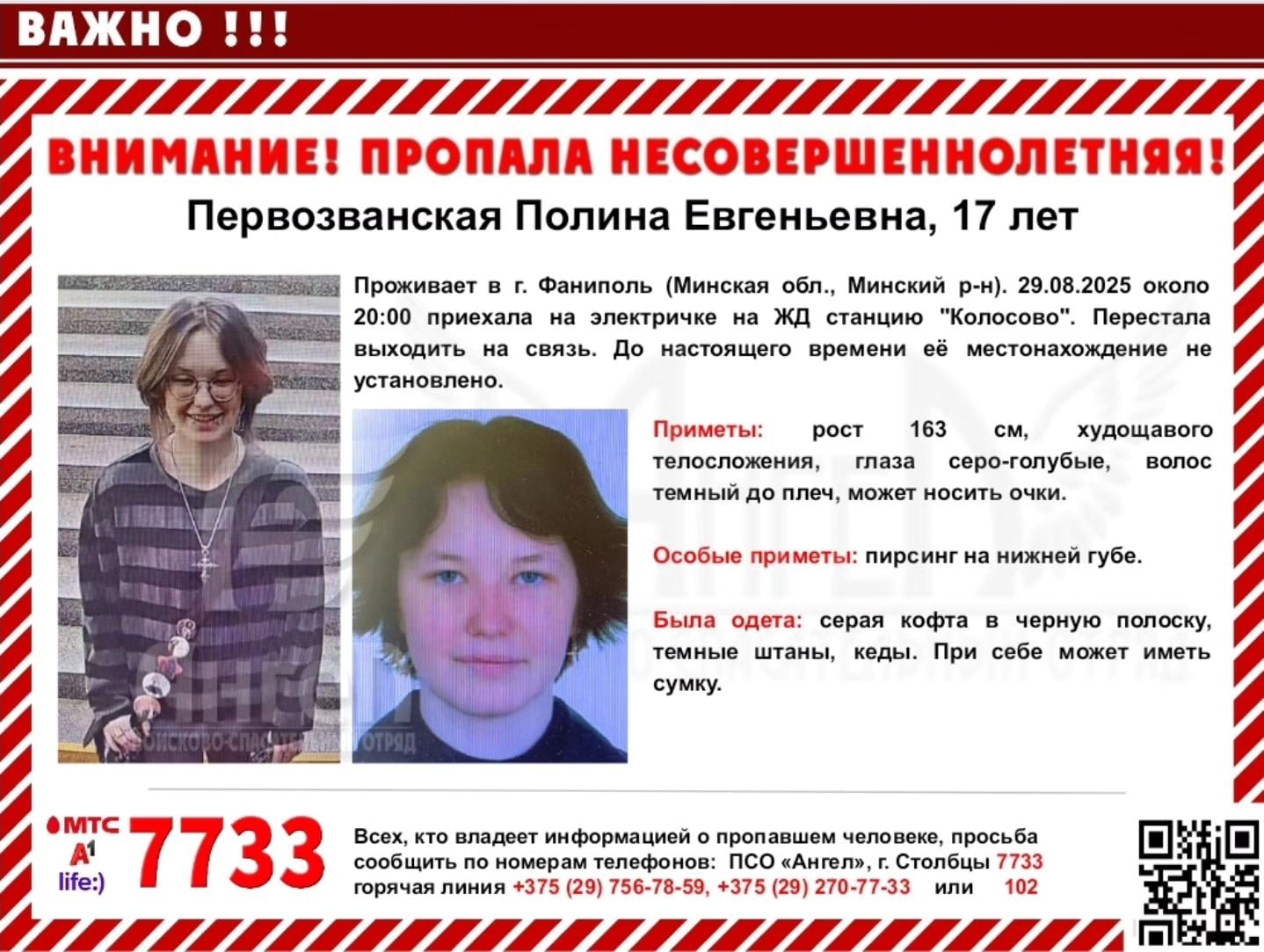 Утром в субботу поисково-спасательный отряд «Ангел» сообщил о том, что пропала 17-летняя жительница города Фаниполь Минского района Полина Первозванская. Сейчас выяснилось, что с ней произошла трагедия.