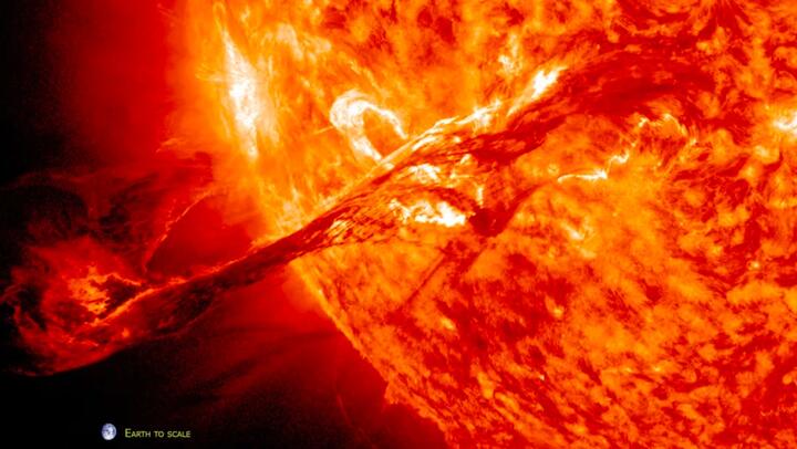 А следом с Солнца срывается облако раскаленной плазмы — корональный выброс звездной массы. Наша звезда словно чихает, выбрасывая в космос с огромной скоростью заряженные частицы. На видео ниже — пример крупного выброса 2012 года (он прошел мимо Земли).