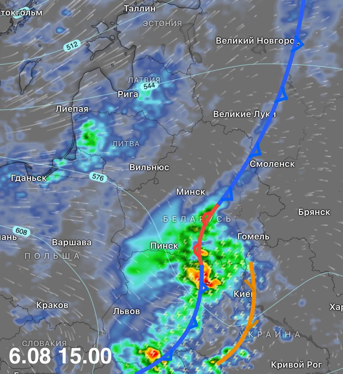 Завтра погоду в Беларуси будет определять холодный атмосферный фронт. Ночью и в 1-ой половине дня на большей части территории он особо себя не проявит и будет выражен лишь кратковременными дождями от небольших до умеренных, которые пройдут не везде.
