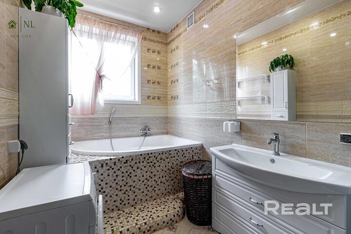 На первом этаже размещены кухня, три изолированные комнаты, гараж на два автомобиля. На втором — кухня, три изолированные комнаты и терраса, которая занимает почти 12 «квадратов». В доме есть два санузла.