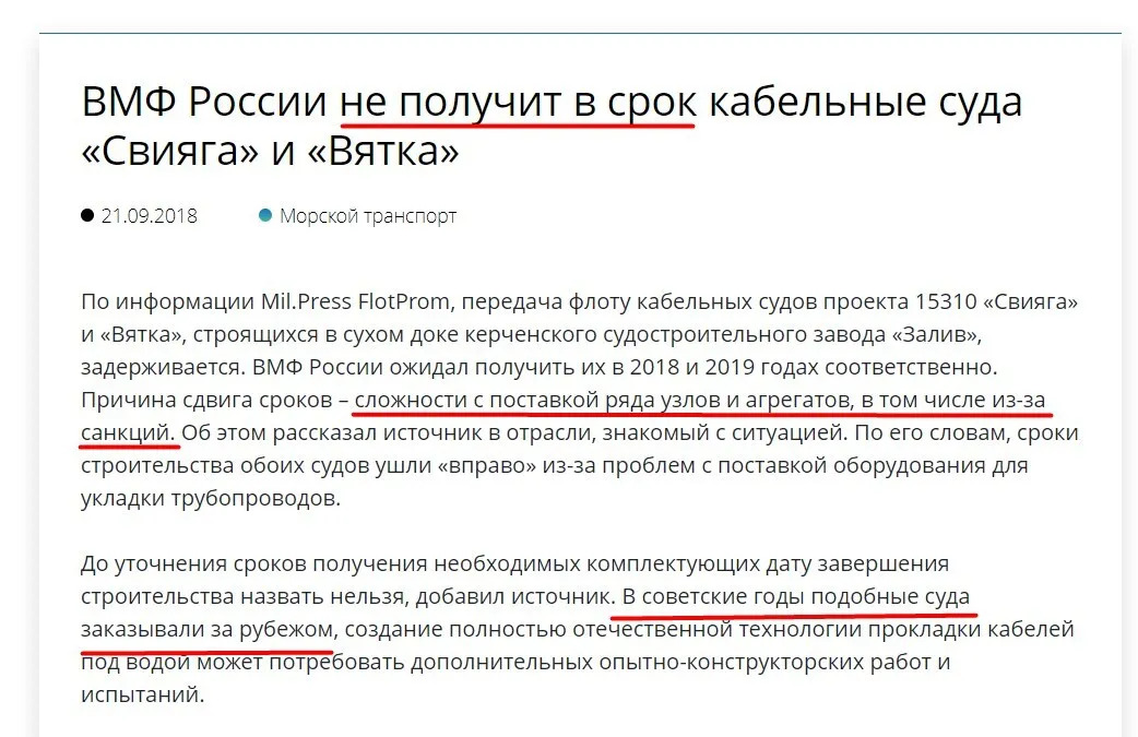 Передача этих судов предполагалась в 2018 и 2019 годах, что на первый взгляд терпимо, но затем был перенос на 2020 и 2021 гг. Некоторое время спустя Зеленодольский завод имени Горького заявил, что вовремя сдать кабельные суда проекта 15310 у него не получается и сроки были перенесены на… 2023 и 2024-й. Но в итоге «Свияга» и «Вятка» так и не были переданы флоту, а работа по восстановлению МГК-608М так и не началась.