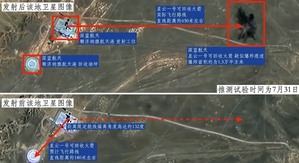 Во время испытаний в сентябре прошлого 2024 года ракета Deep Blue потеряла управление во время последнего спуска, совершив аварийную посадку на эвакуационную площадку и повредив верхнюю часть.