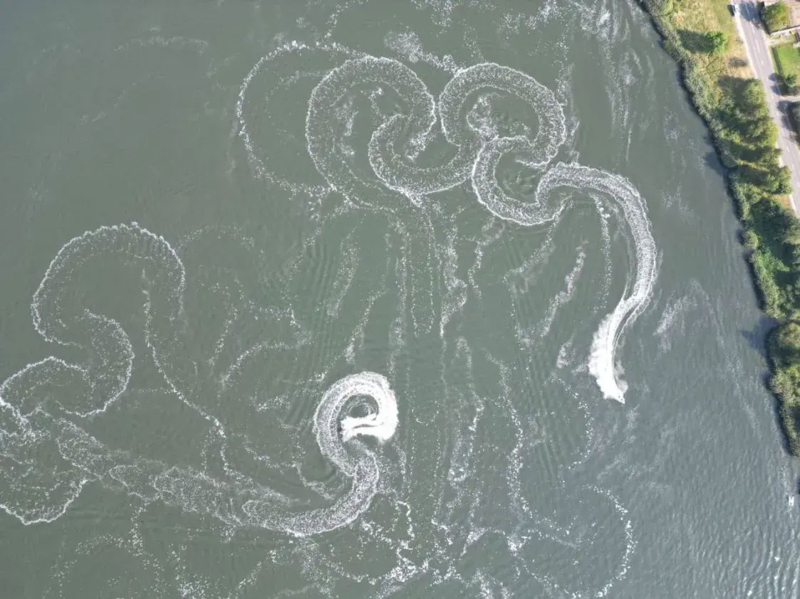Оказалось, что все это делается с одной целью — не допустить гибель рыбы, живущей в озере. Эти меры принимаются для насыщения воды кислородом (аэрацией).