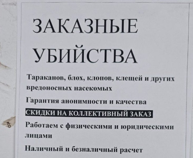 — Если сделал работу качественно, то клиент обязательно порекомендует тебя друзьям или соседям. И это самый надежный способ продвижения. Кроме того, я пробовал разные методы рекламы: объявления в интернете, расклейку по подъездам. Иногда люди звонят именно после того, как случайно увидели листовку с креативной формулировкой. Но отклики бывают разными: кто-то хвалит за креатив, кто-то возмущается.