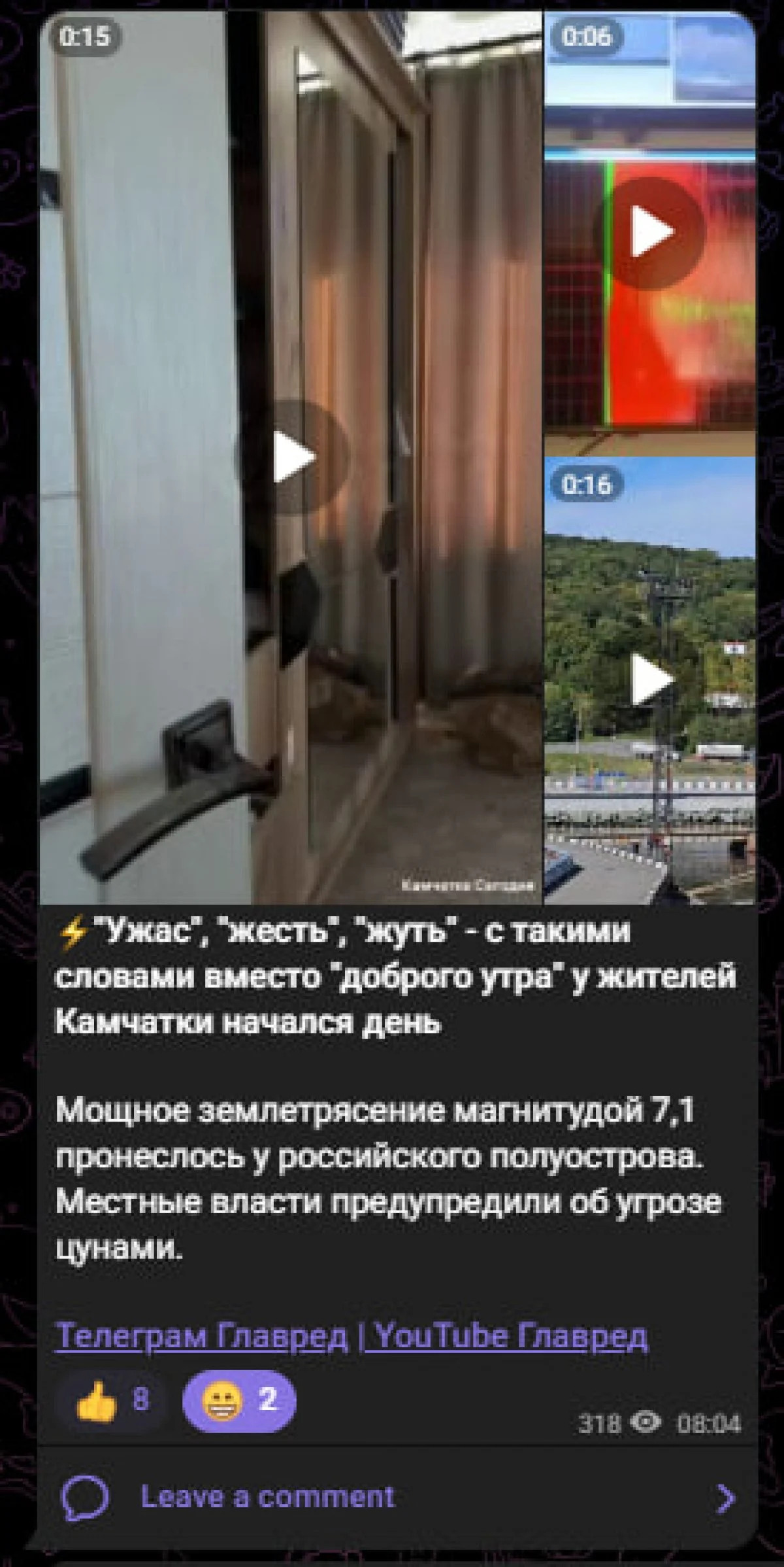 В региональном ГУ МЧС сообщили об угрозе цунами для трех округов: Алеутского, Усть-Камчатского и Петропавловск-Камчатского. В то же время российские пропагандисты бьют тревогу из-за новых возможных разрушительных волн.