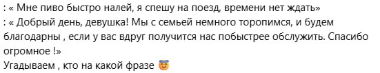 Приводят и забавные примеры из повседневной жизни: в общепите русские могут говорить «Мне быстро налей пиво, я спешу», а белорусы формулируют просьбу вежливо: «Мы немного торопимся, будем благодарны, если получится обслужить нас быстрее».