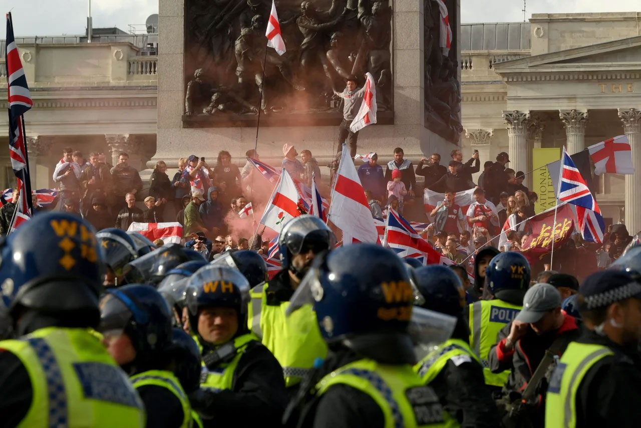 В Лондоне примерно 110 тысяч человек вышли на протест после призыва ультраправого активиста Томми Робинсона. Количество участников контрдемонстрации Противостоять расизму составило около 5 тысяч человек.