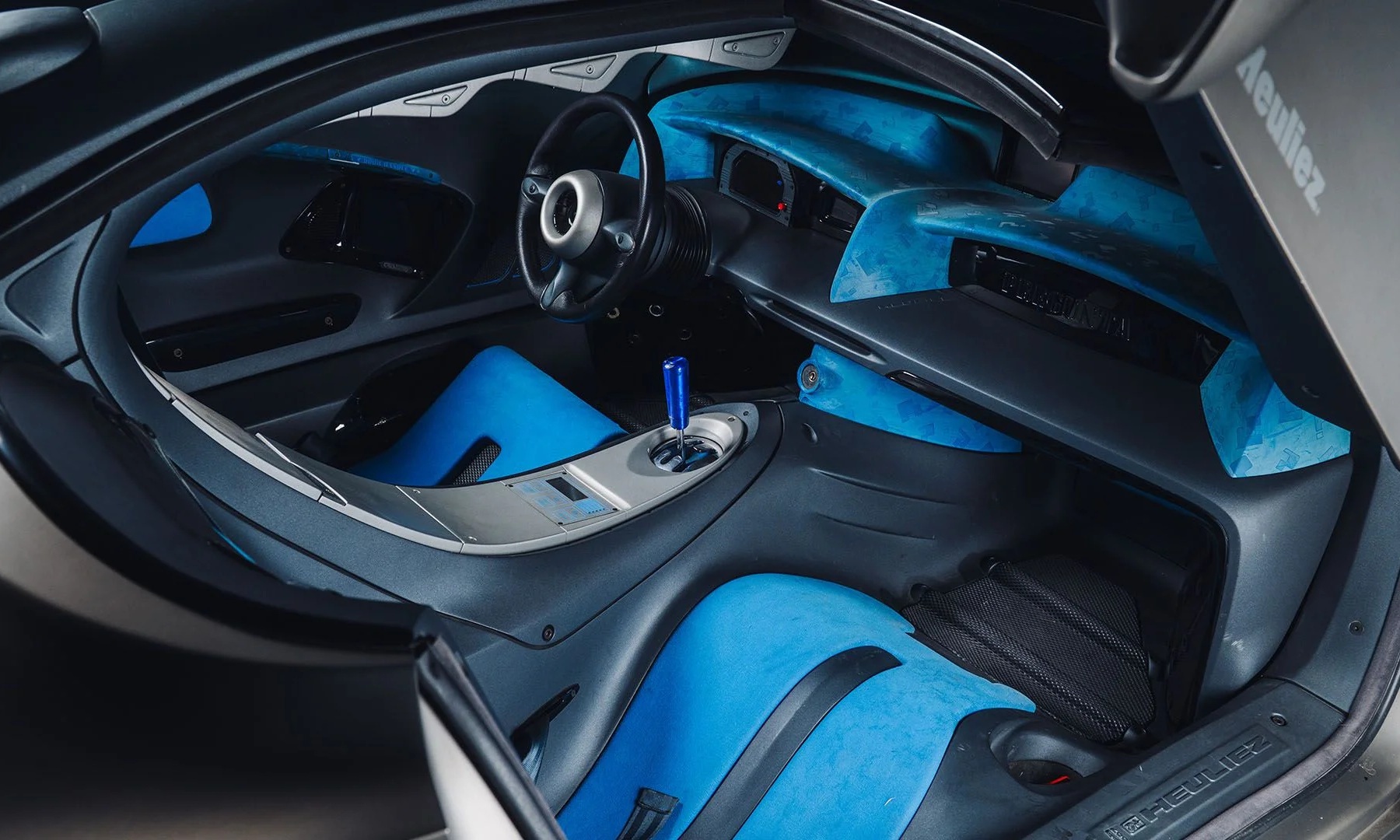 Клиновидный кузов без крыши изготовили из карбона и покрыли матовой краской. Конечно же, сохранили фирменные «гильотинные» двери.
