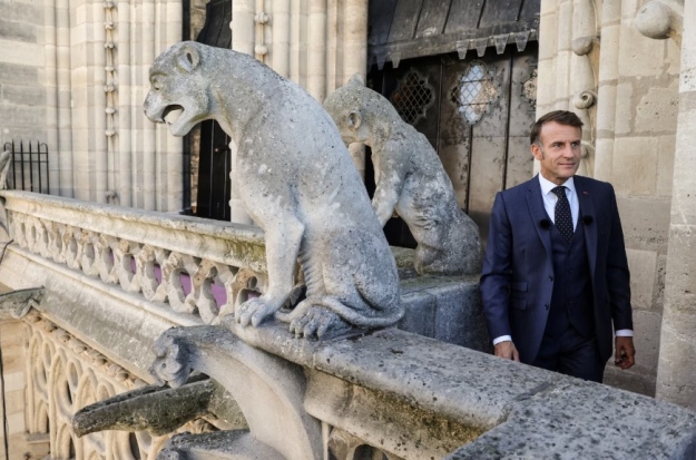 Президент Франции Эмманюэль Макрон поднялся по лестнице на колокольню Нотр-Дама, чтобы официально открыть северную и южную башни, которые начнут принимать посетителей уже в субботу.