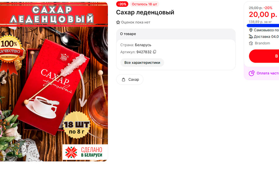 К слову, в сервисе доставки продуктов сахар «Леденцовый» стоит примерно столько же.