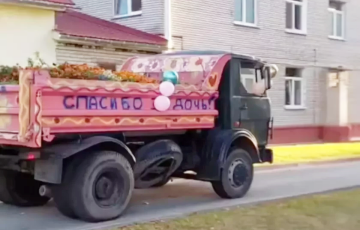 В Молодечно мужчина приехал к роддому на самосвале с цветами