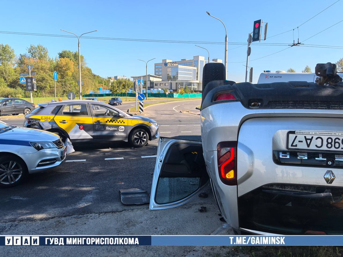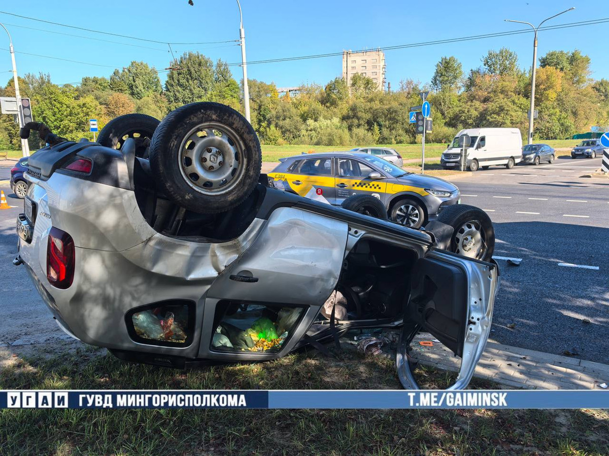 Очевидцы сообщают Onlíner о серьезном ДТП на ул. Семашко в Минске. Там на крыше оказалась легковушка.