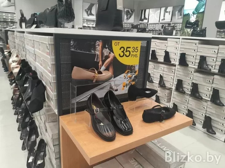 Магазин выглядит светлым и просторным. На стеллажах одна на одной стоят коробки с обувью. Сложены они, надо признать, очень аккуратно. Ценников в магазине практически нет — они стоят только у тех моделей, к которым решили привлечь внимание покупателя «старым дедовским способом». Вот так, как здесь: