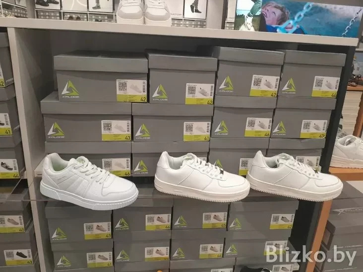 Большая часть товара привычных ценников не имеет — на коробке с каждой моделью есть QR-код. Как узнать цену понравившейся пары обуви, указано на таких табличках: