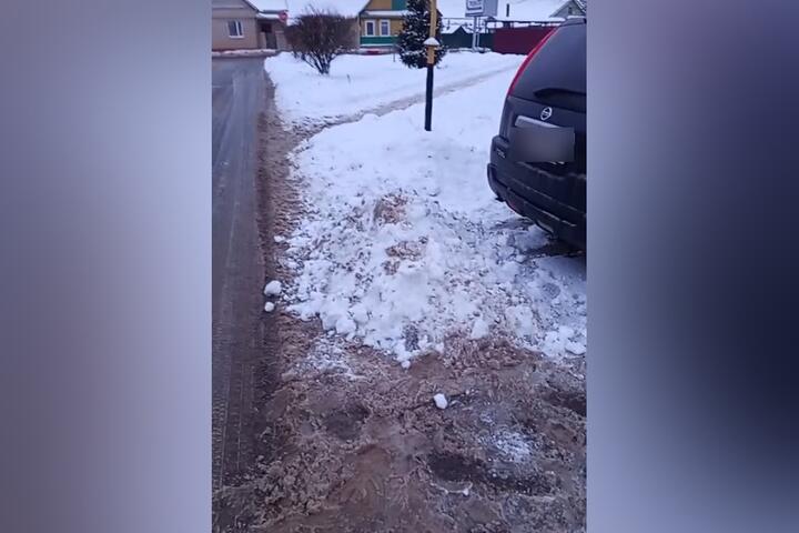 Мужчина показал невысокий сугроб, который сделал за авто, чтобы усложнить ему выезд.