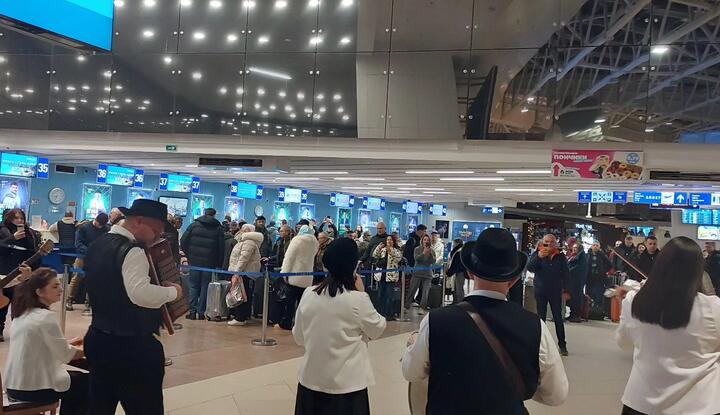 Пассажиры отправились из Минска в Тель-Авив в 7.10. Перед этим у стоек регистрации по случаю открытия рейса выступал ансамбль еврейской музыки «Шир».