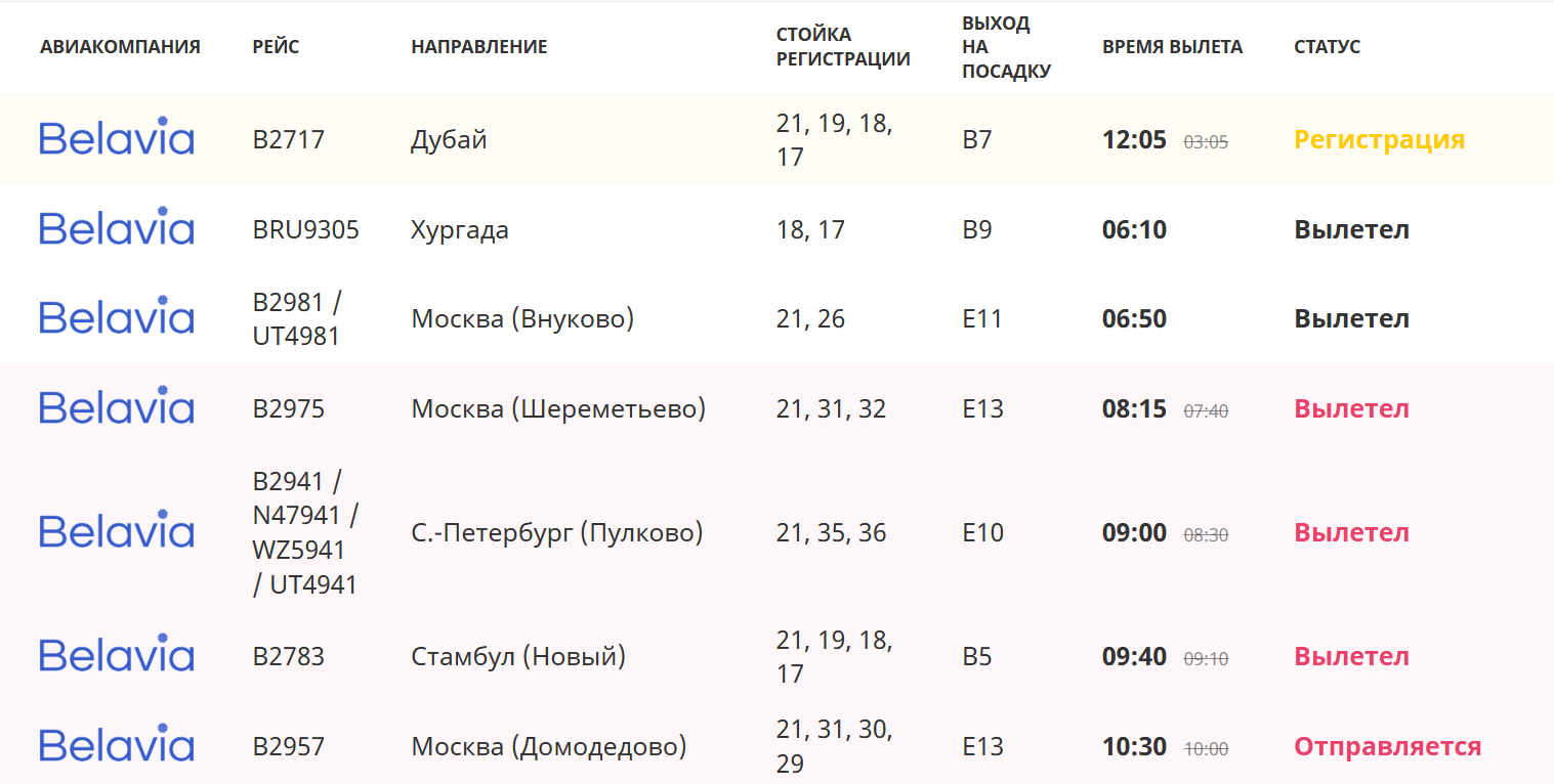Так, рейс из Минска в Дубай авиакомпании «Белавиа», который должен был стартовать в 3.05 9 января, был отложен на девять часов — вылет ожидается только в 12.05.