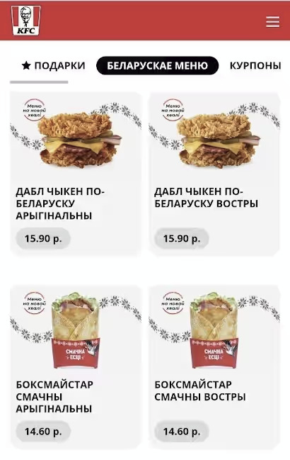 Популярная сеть быстрого питания KFC о запуске нового меню в белорусском стиле официально объявила 3 марта в своих соцсетях, причем для полного погружения в национальную атмосферу сделала это на белорусском языке, заметил «Телеграф».