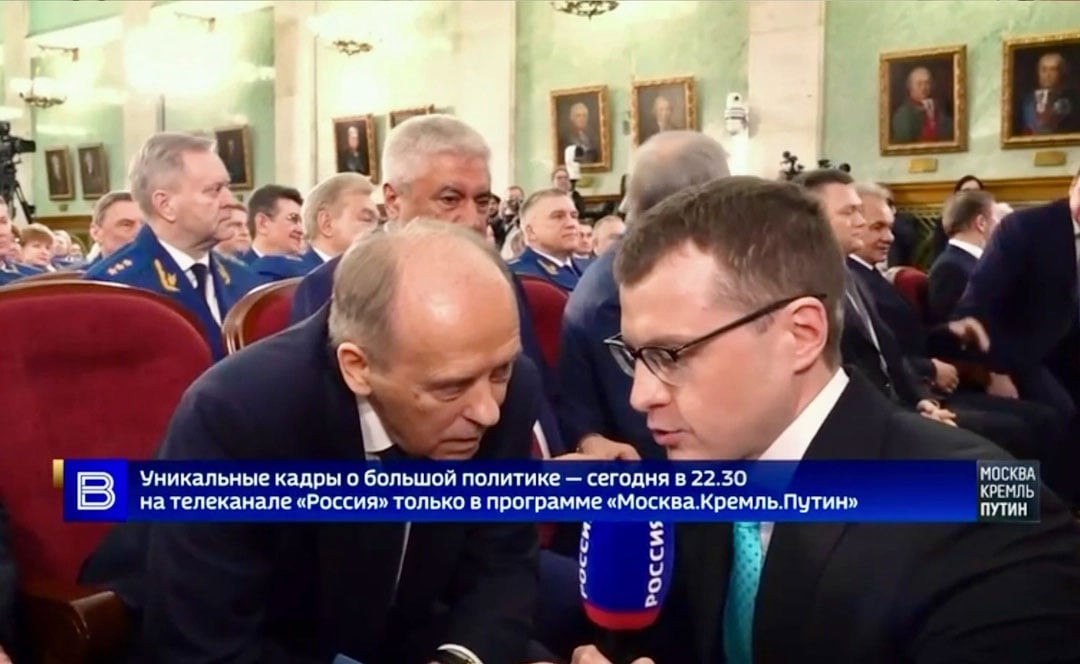 На этом месте администрация президента cхватилась за голову: надо как-то объяснить происходящее населению. А как? По команде главы АП Алексея Громова главный кремлевский телерепортер Павел Зарубин на каком-то торжественном заседании подкрался со съемочной группой к сидящему в первом ряду директору ФСБ Александру Бортникову.