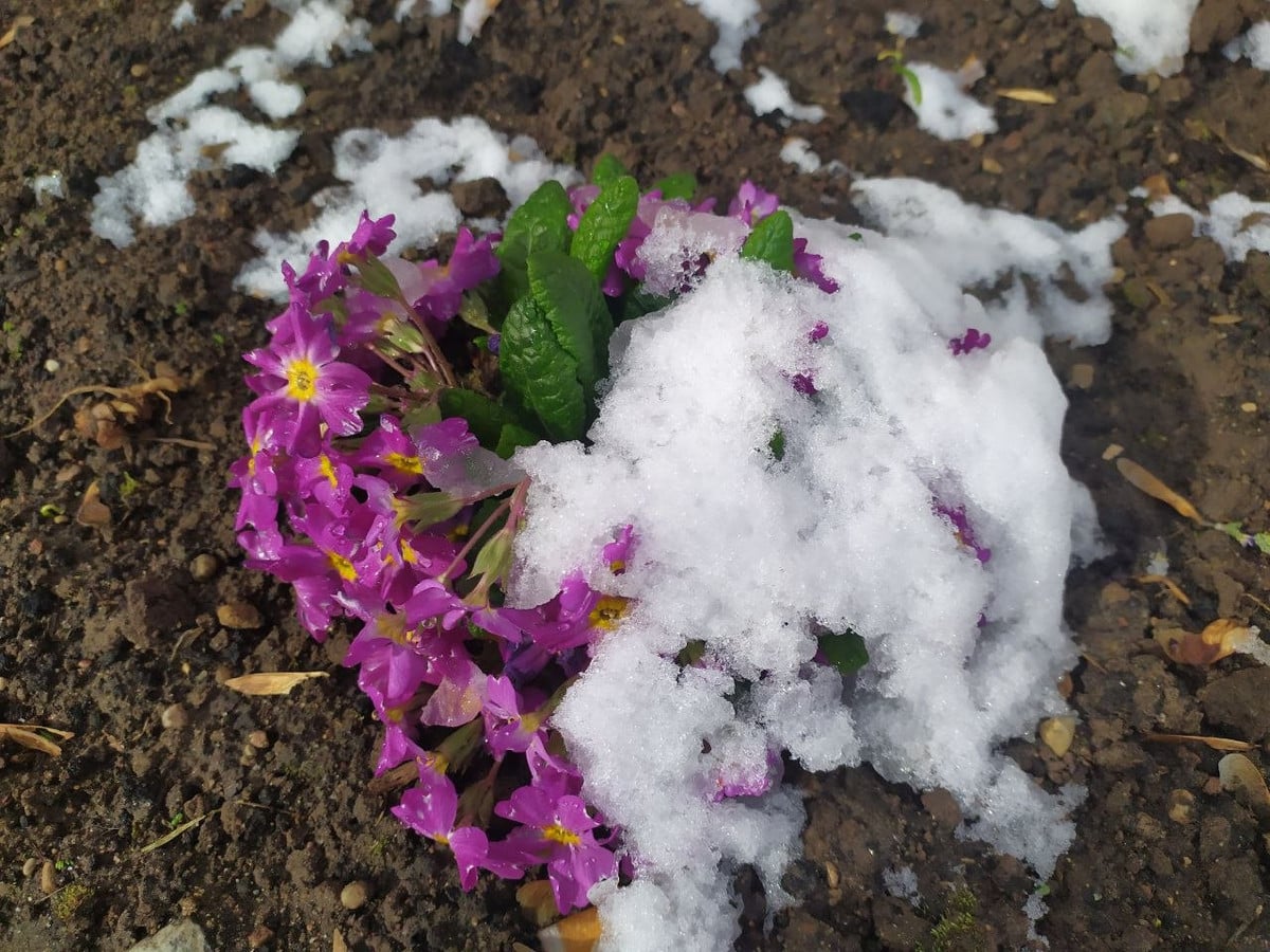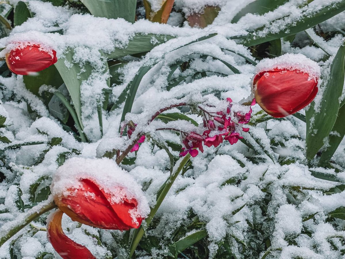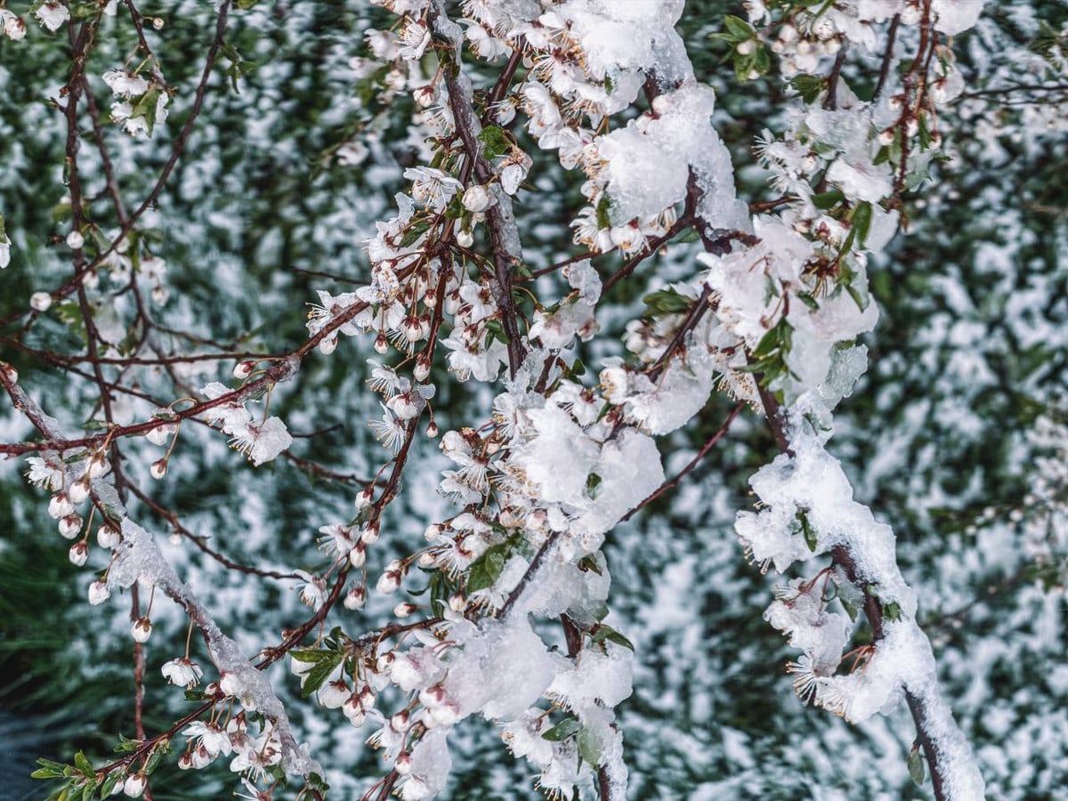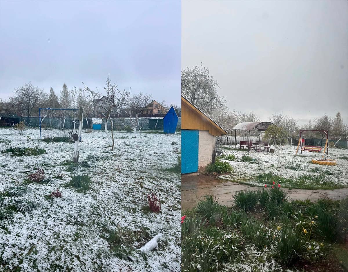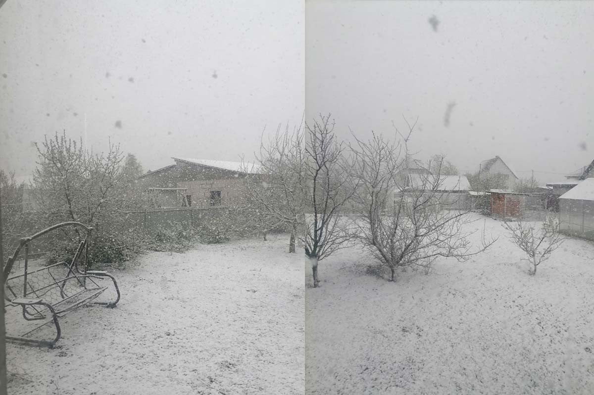 Снег в апреле: его не звали, но он пришел и прошелся по Минской области. Вот какие фотографии прислала читательница «Онлайнера» из деревни Квасыничи Слуцкого района: вся весенняя зелень покрыта белыми хлопьями.