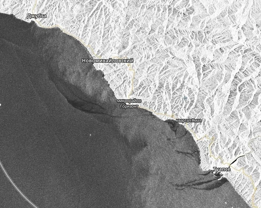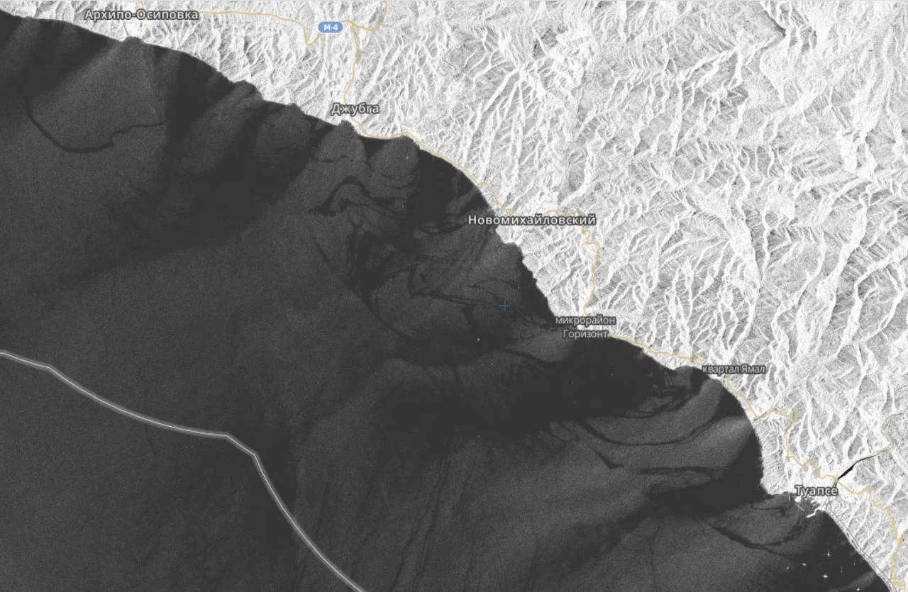 Край пятна на снимке оказался на расстоянии 50 км от Туапсе, сообщает проект экологического мониторинга Прозрачный мир.