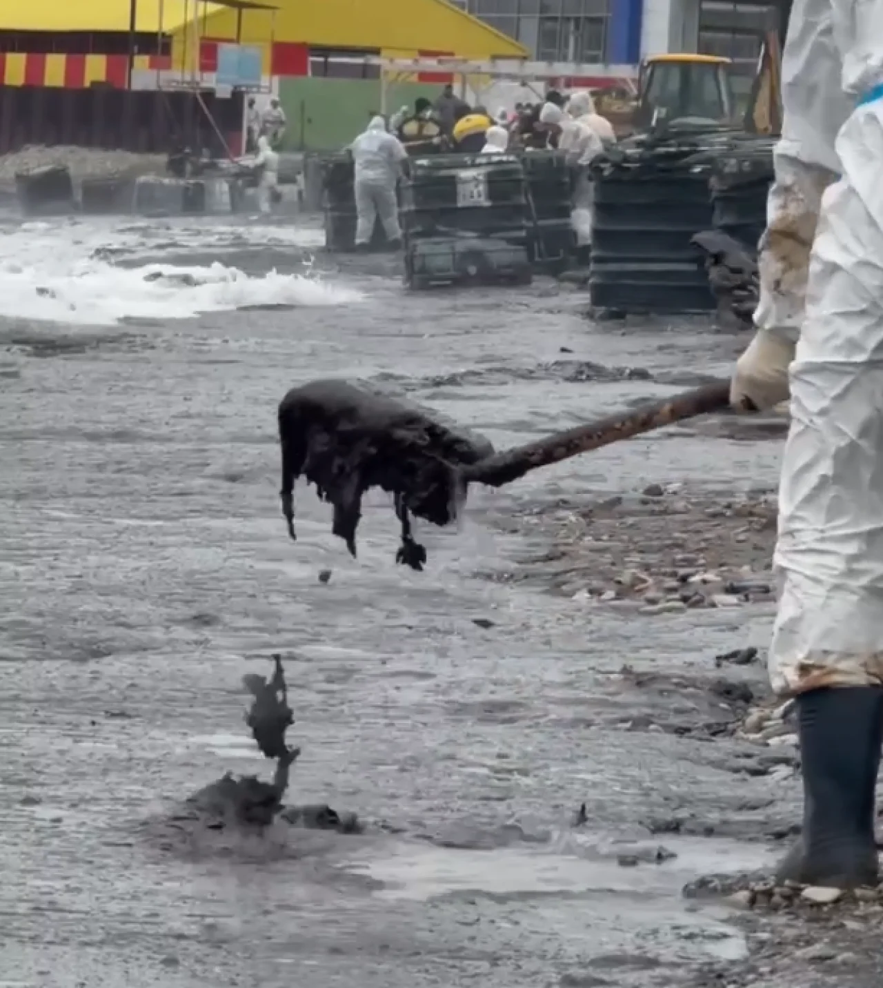 26 апреля местные жители опубликовали видео, на котором видно, как мазут с пляжей Туапсе убирали лопатами. Сообщалось, что не хватает людей и техники.