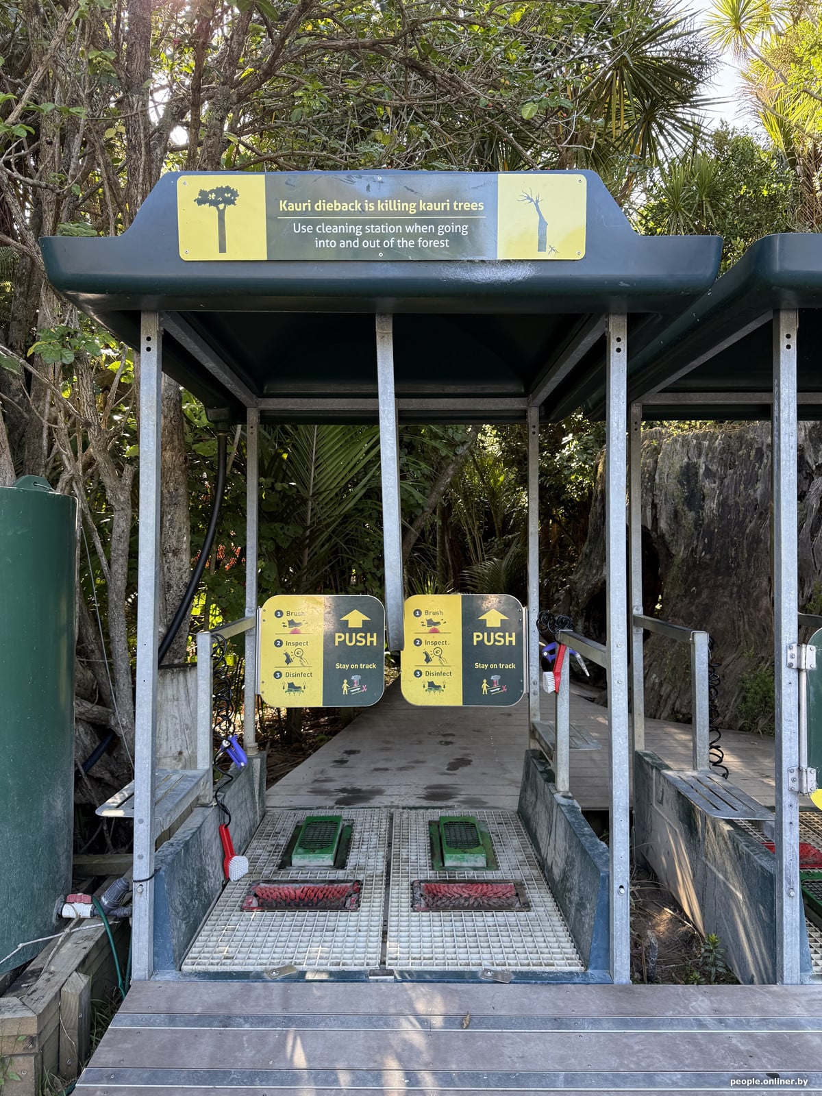 А еще здесь растут деревья каури — огромные, тысячелетние. Они не встречаются нигде, кроме Новой Зеландии. Каури изо всех сил стараются охранять. Появилась зараза, которая их ест — Phytophthora agathidicida, и ее можно случайно перенести через почву, прилипшую к обуви. А здесь очень много треков для ходьбы. Вся страна испещрена дорожками для хайкинга. Рядом с каури стоят щетки, чтобы ты очистил свою обувь, помыл с пеной, не заразил дерево. И на обратном пути — то же самое. Все старательно чистят щетками обувь. Так переживают из-за своей природы, даже трогательно.